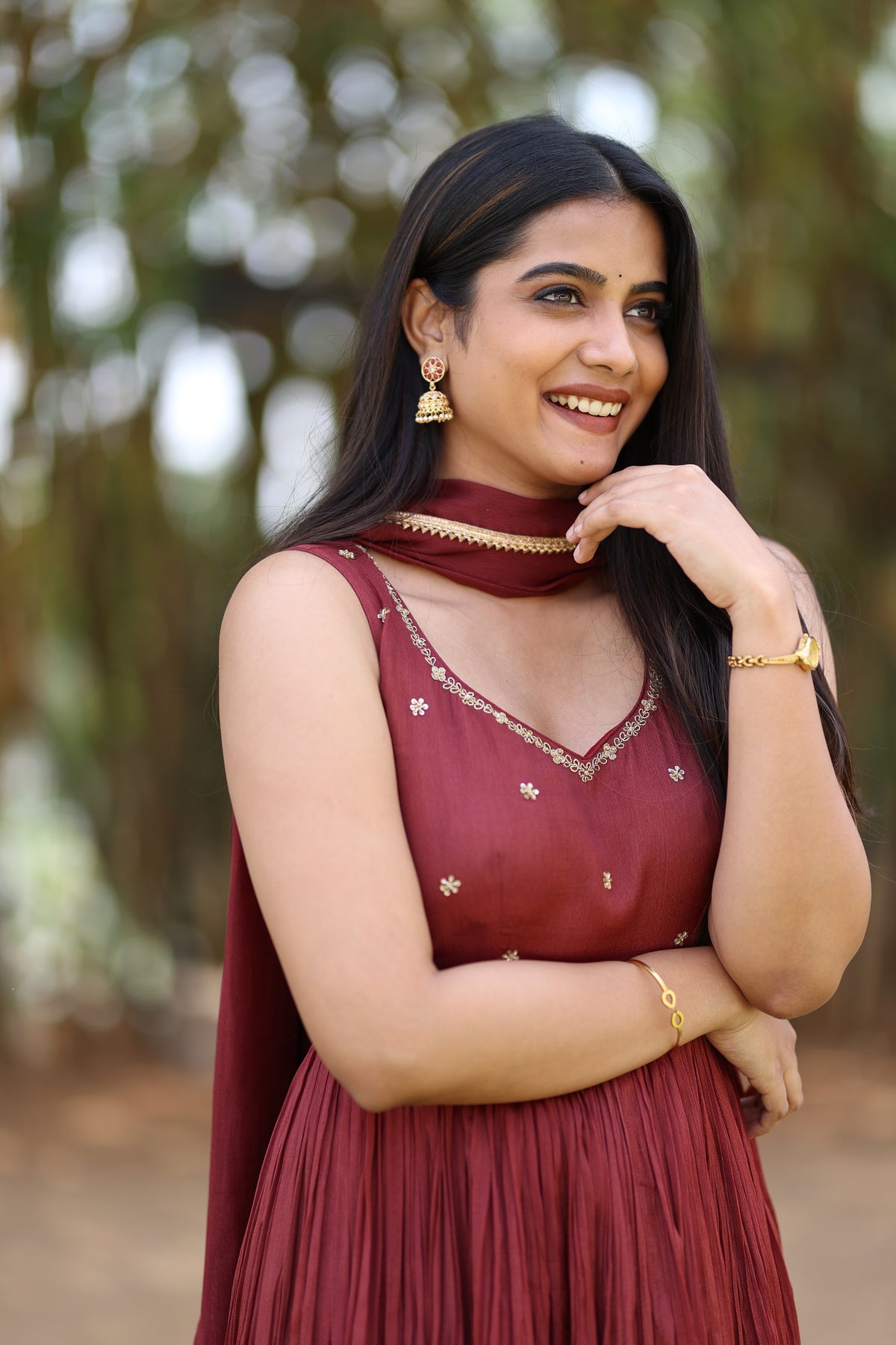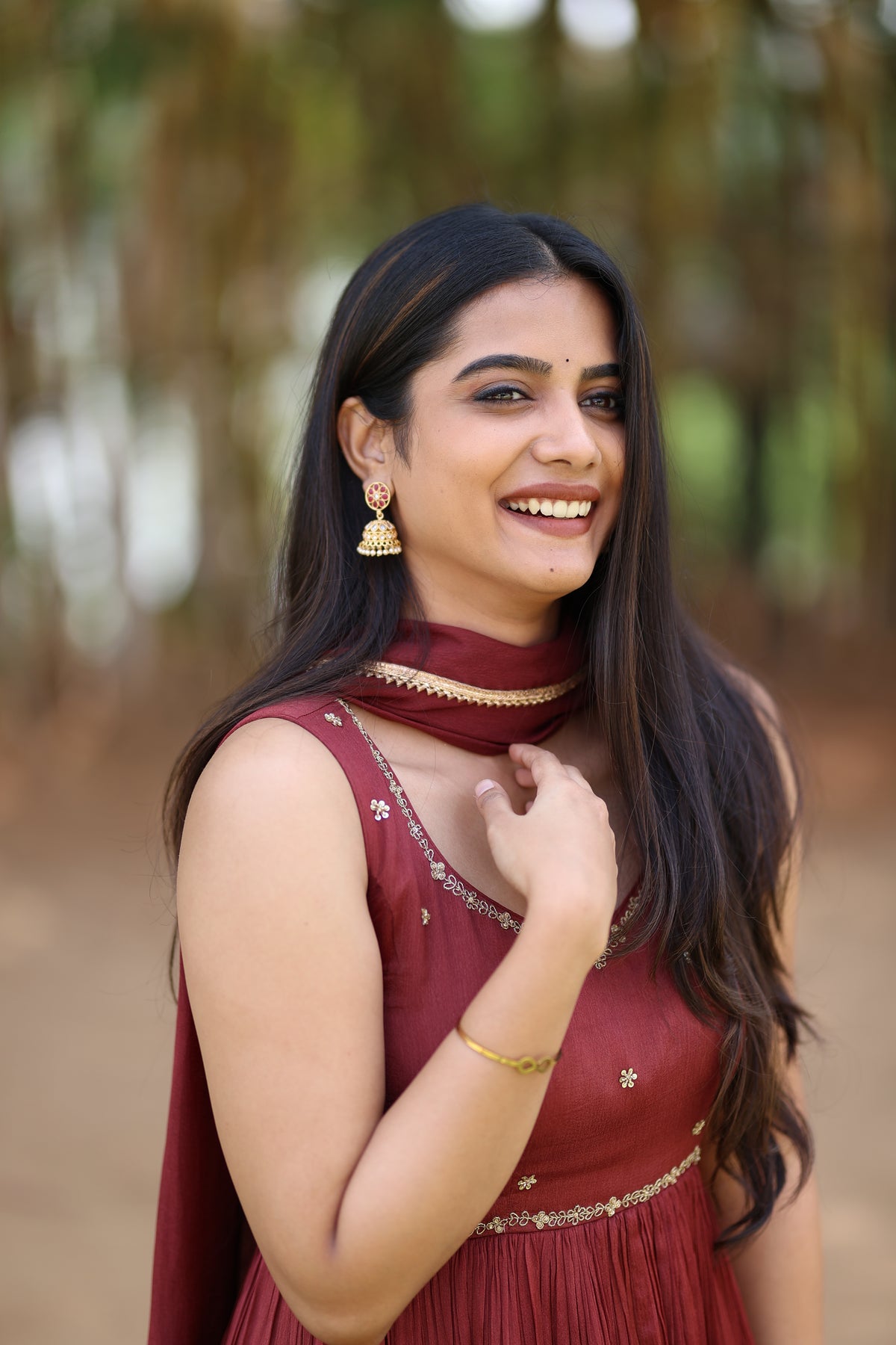 BROWN CHINNON SUIT WITH WORK PAIRED WITH SELF DUPATTA AND PANTS
